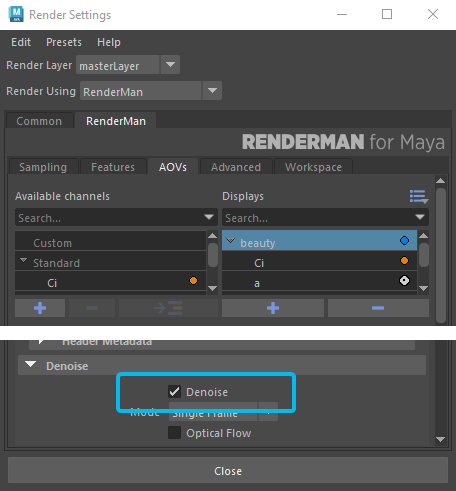 However, with the “Denoise” option checked, you will be able to run Renderman standalone denoiser on your computer on the images received from RANCHSync.